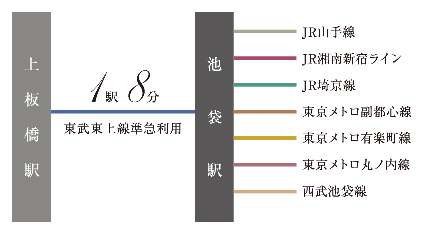 池袋から他路線に乗り換えて都心各所へもスピーディに向かえます。
