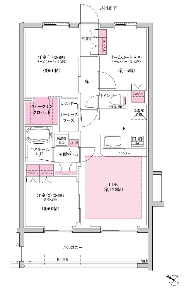 2LDK+S+WIC+O(3・4階)