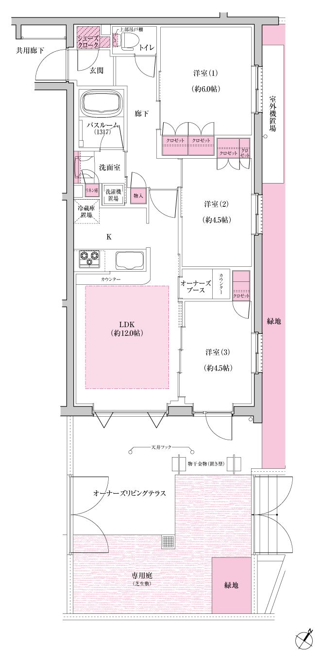 - オーナーズリビングテラス面積/15.18㎡(約4.59坪)